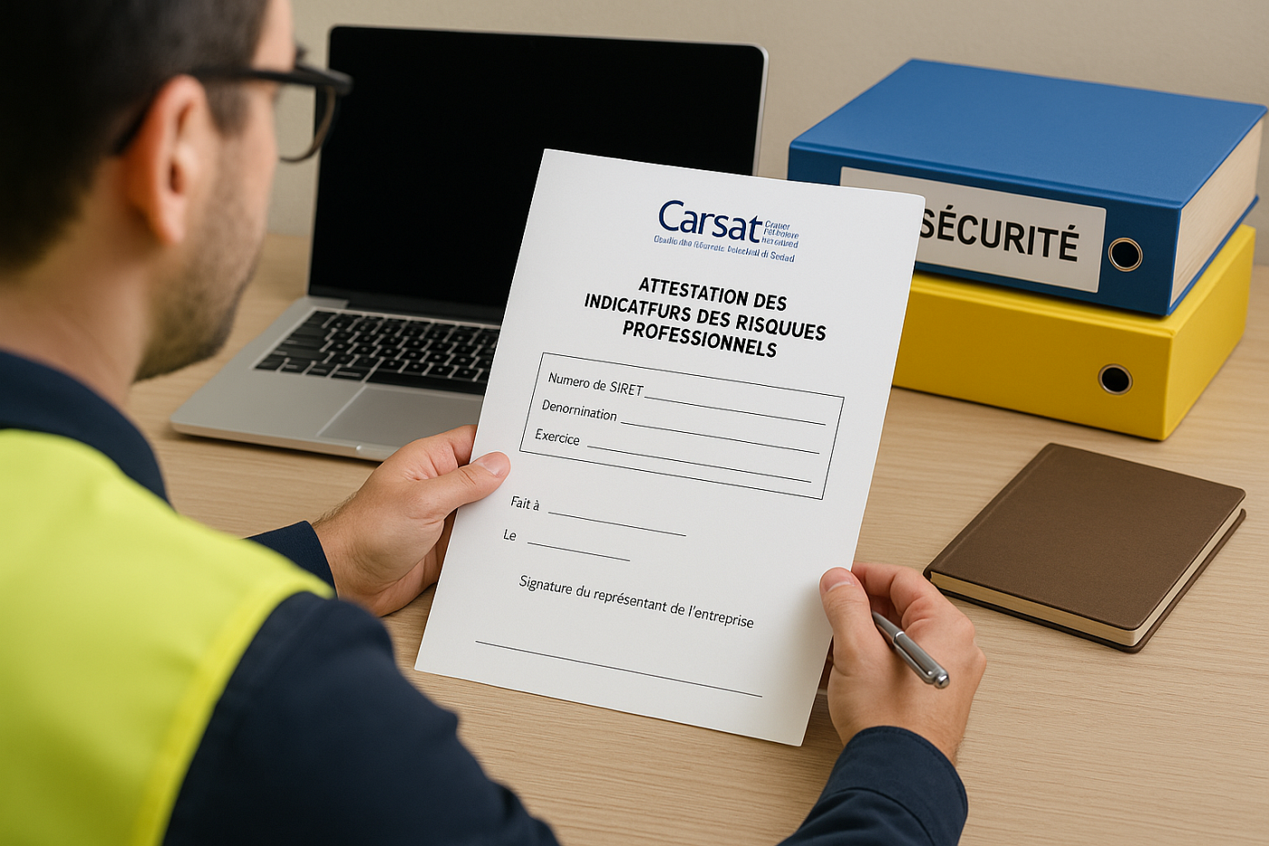 Depuis le 1er juillet, vous pouvez accéder à une nouvelle version de l’attestation des indicateurs des risques professionnels.Ce document peut vous être demandé dans le cadre d’un appel d’offres, de marchés publics ou pour l’obtention d’un label ou d’une accréditation.L’attestation des indicateurs des risques professionnels vous permet de mettre en perspective vos données de sinistralité avec cell...